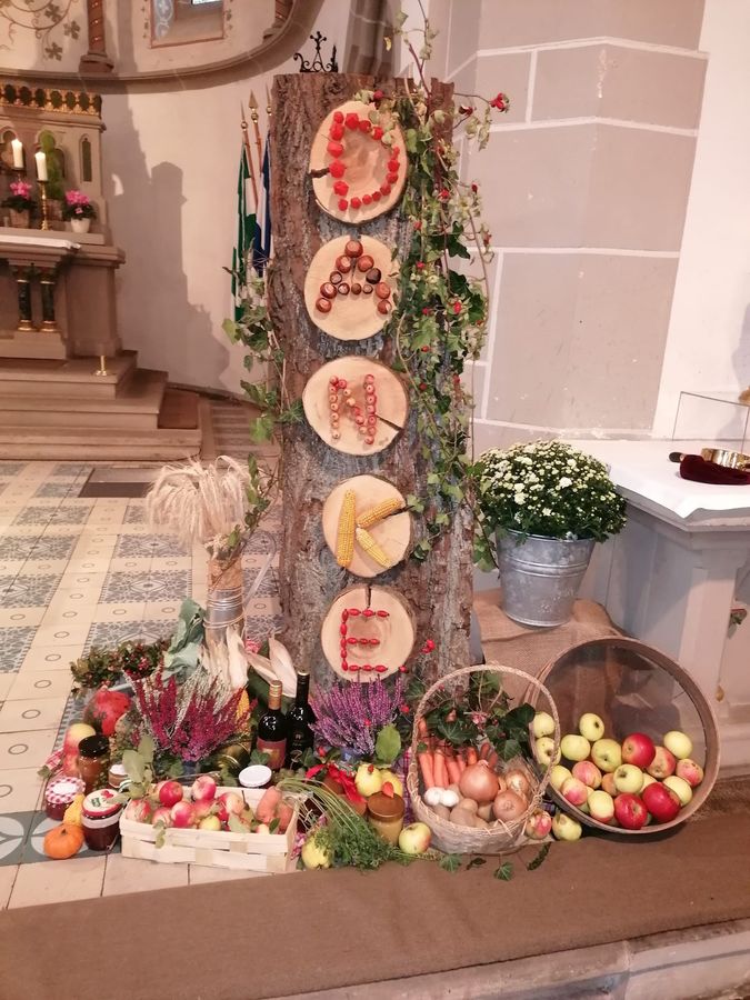 Am Sonntag, 02.10.2022, wurde in unserer Pfarrei das Erntedank-Fest mit einem Hochamt gefeiert. Der prachtvolle Erntedank-Altar wurde von der kfd Lütter gestaltet. Hieran beteiligt waren besonders Ulrike Sattler sowie Tanja und Sebastian Schreiner.